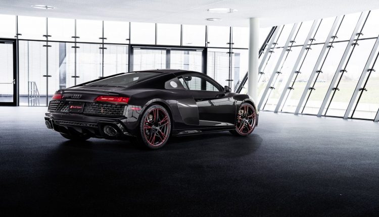 Destaca por contar con un trabajo de pintura exterior cuya tonalidad elegida es la ‘Panther Black’ del catálogo de Audi Exclusive que no pasa inadvertido ya que cuando lo miramos de cerca muestra un tono púrpura oscuro. Las carcasas de los retrovisores están realizadas en fibra de carbono, cuenta además con llantas de 20 pulgadas en acabado negro mate, insignias con acabado oscurecido y múltiples detalles de color en llantas y carrocería. No falta tampoco el paquete exterior de carbono con los sideblades del R8 y algunas molduras de este material en el vano motor.