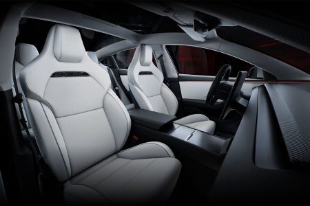 Estéticamente cuenta con múltiples cambios: difusor trasero específico, alerón trasero en fibra de carbono, emblema identificativo, llantas de aluminio forjado de 20 pulgadas con neumáticos Pirelli P Zero 4, emblema Ludicrous… pero ahí no acaba todo. En su interior, encontramos los nuevos asientos deportivos estrenados recientemente en el Tesla Model S Plaid y que cuentan con unos refuerzos laterales de mayor tamaño así como una inserción decorativa Ludicrous. En la parte superior del salpicadero, se reemplaza el acabado textil por uno en fibra de carbono.