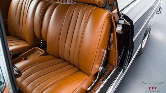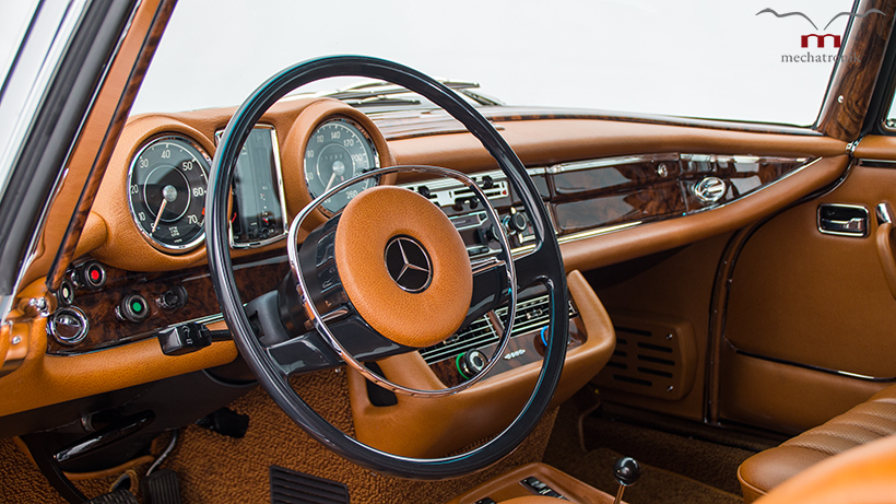 La unidad en concreto del W111 Coupé que te mostramos además de someterse a una exhaustiva restauración, también ha recibido el motor V8 de 5.5 litros fabricado a mano del Mercedes SLK 55 AMG R172 con 415 CV de potencia, manteniendo incluso la caja automática de siete velocidades e integrada debidamente con el interior vintage del modelo.