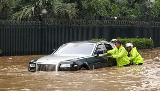 Inundan un Rolls-Royce Ghost en Indonesia