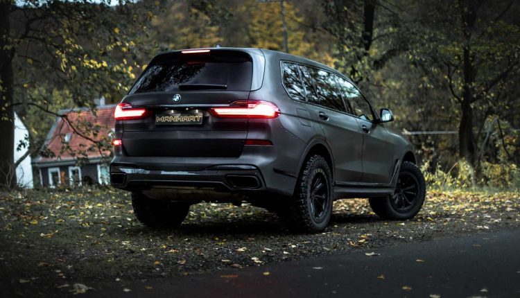 Si bien a la hora de adquirir un BMW X7 podemos complementarlo con el ‘paquete Off Road’ que ofrece la marca de manera opcional para mejorar sus capacidades fuera del asfalto, preparadores especializados como MANHART también nos permiten poner el foco en ese aparatado.