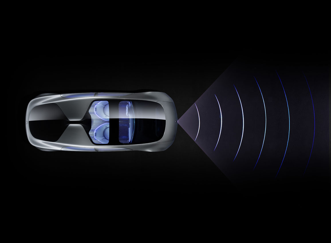 Mercedes-Benz F 015 Luxury in MotionMit dem �??Extended Sense�?? erfasst der F 015 sein Umfeld rundum. Stereokameras, Radar- und Ultraschallsensoren liefern umfangreiche DatenWith «Extended Sense», the F 015 monitors its surroundings in every direction.Stereo cameras, as well as radar and ultrasonic sensors relay extensive data