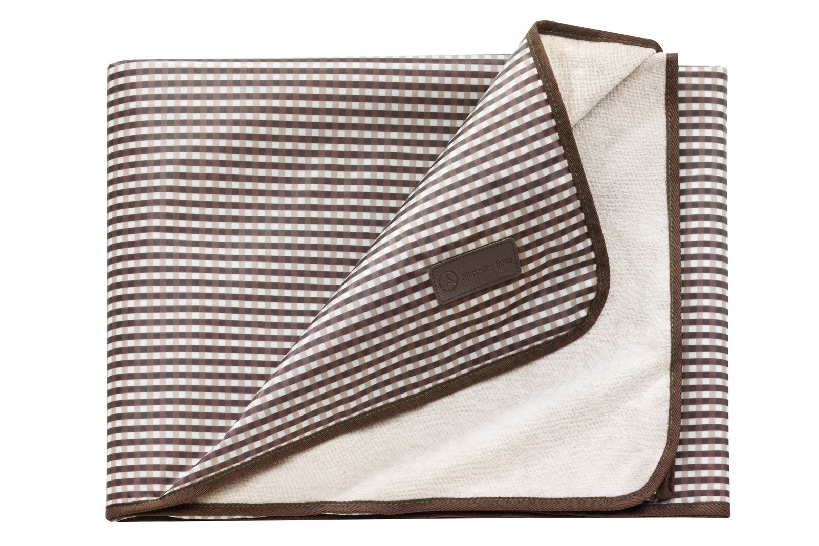 Mercedes-Benz Accessories, Collection GLA-Klasse: Braun-beige karierte Picknickdecke, eine Seite aus Nicky Frotte aus 100% Polyester, R�?Ľckseite aus beschichtetem Polyester.