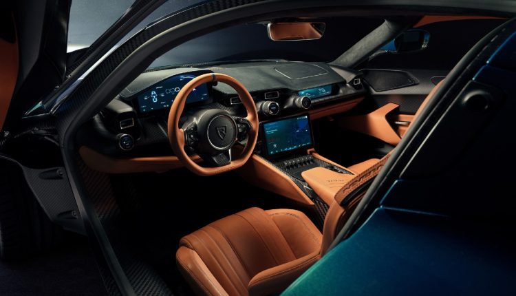 Cuenta además con varios modos de conducción (Sport, Drift, Comfort, Range, Track y otros dos personalizables). Su interior cuenta con una configuración biplaza donde abunda la fibra de carbono vista de su chasis monocasco y tres pantallas TFT, una para la instrumentación, otra para el sistema multimedia y otra para el piloto.