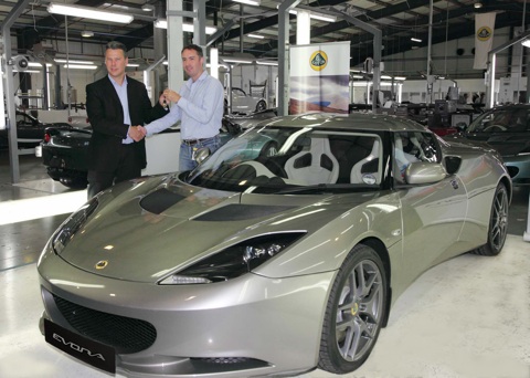 Matthew Melling ha sido el primer afortunado en llevarse la unidad número uno en venta del totalmente nuevo Lotus Evora, entregado en color titanio y con un interior similar, por parte del director de Lotus Cars Limited, Luke Bennett.